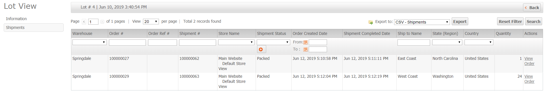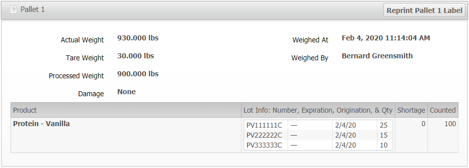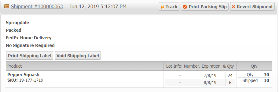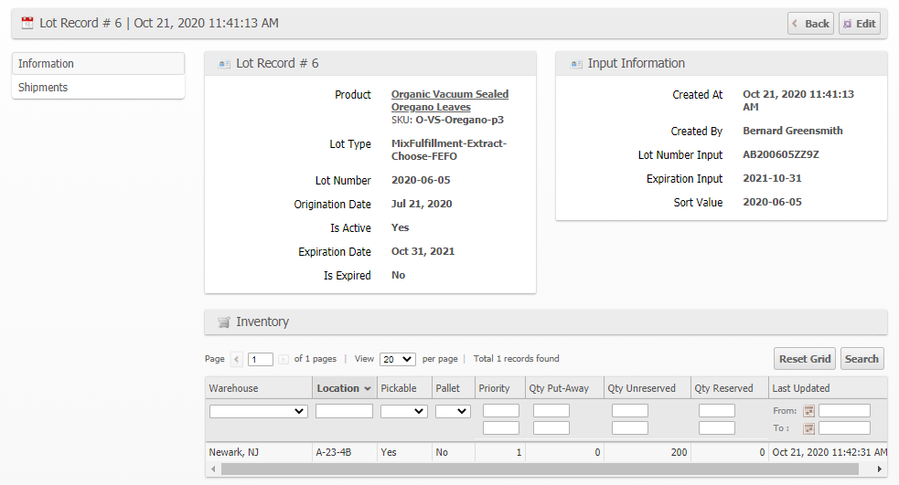 The Shipments tab will show any shipments that have used this Lot.