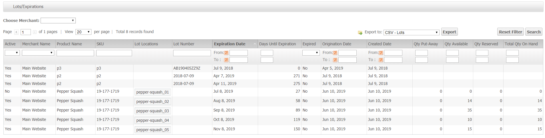To view all Lot Records, go to Catalog > Lots/Expirations.