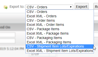The Shipment Item Lots/Expirations export is also on the Lots/Expirations grid.