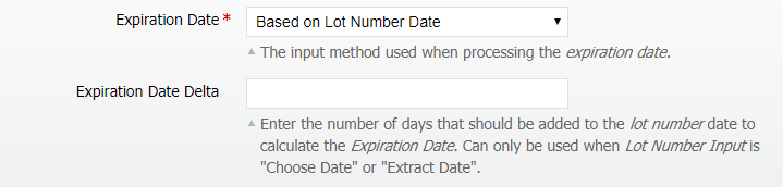 - Based on Lot Number Date — Used when the lot number has a date that is used to calculate the expiration date, no input field