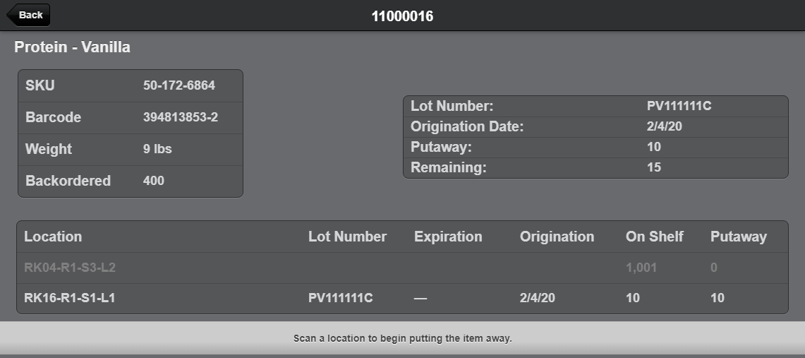 - The amount put-away and the amount remaining for this lot