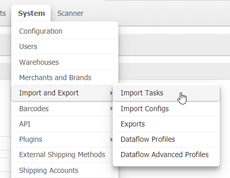 - Navigate to System > Import and Export > Import Tasks.