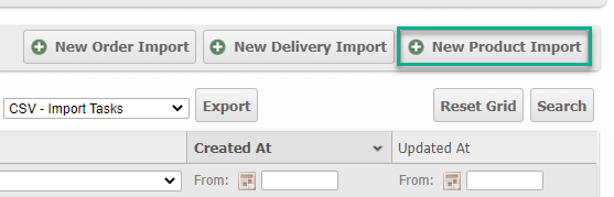 - From the "Import Tasks" page, click New Product Import in the top right of the window.