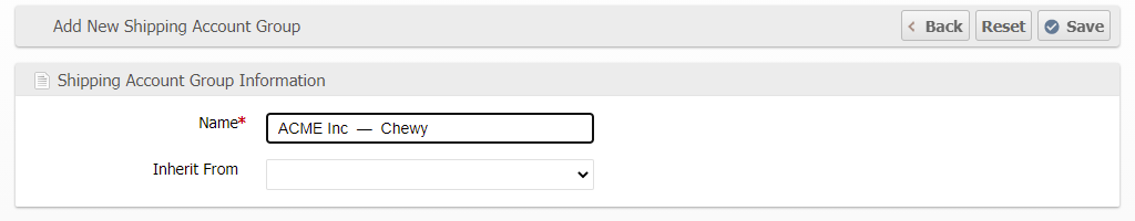 - Set the field to use the newly created Shipping Account Group — "ACME Inc — Chewy"