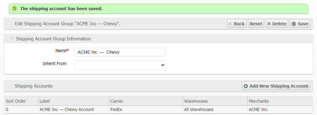 - Name the Shipping Account Group — "ACME Inc — Chewy"