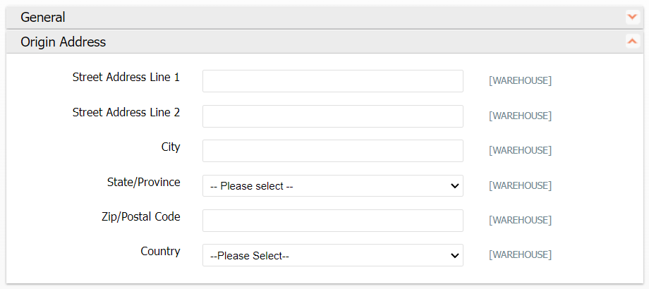 Expand the 2nd pane (Origin Address) and fill out the warehouse address to set an origin for the orders.