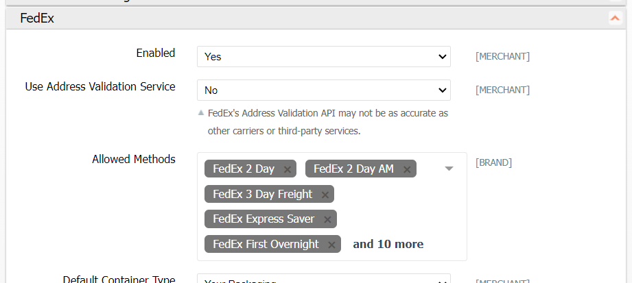 In addition to enabling a carrier, before you can use one that requires an online account you must add your shipping account information. See Shipping Accounts.