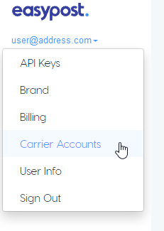 - Login to your EasyPost account dashboard and go to the Carrier Accounts page.