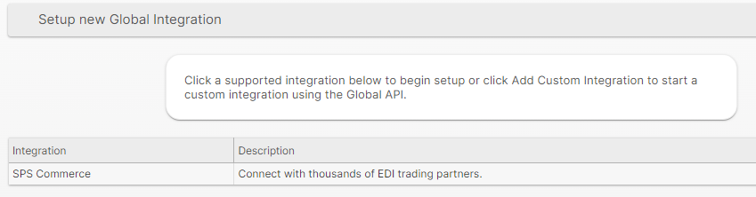 - Below "Setup new Global Integration" click "SPS Commerce".