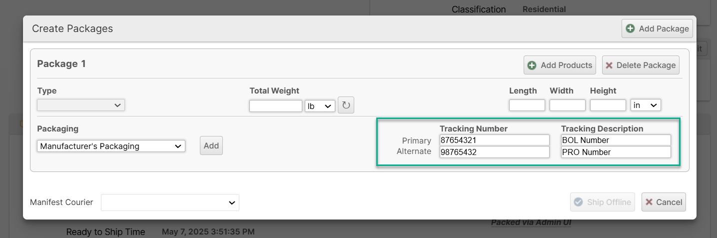These can also be added after packing if you use the Wait for Shipped option by adding tracking numbers later: