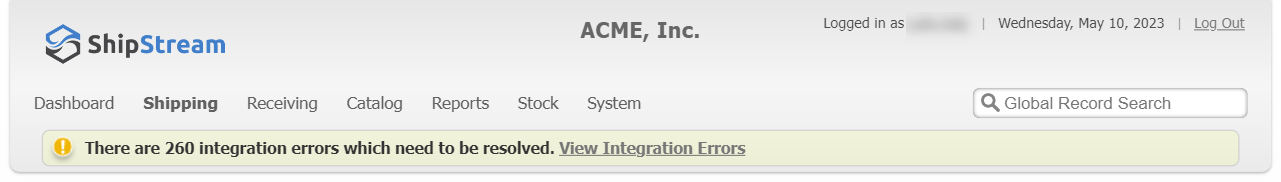 Additionally, when a webhook fails on the first attempt, this is logged as an Integration Error and a notice will be displayed on the Client UI panel if there are any unresolved errors.