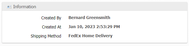 Displays who created the BFO and when it was created. It will also display any Grouping options that were used to create the BFO. The BFO example below was created while using the "Group By: Shipping Method" option.