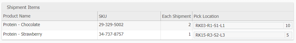 The pick locations are automatically populated using locations chosen by ShipStream, but it may be advantageous to pick from different locations depending on your warehouse layout and inventory management goals. For example, do you want to pick all from one location or perhaps you want to use this as an opportunity to deplete some fragmented locations?