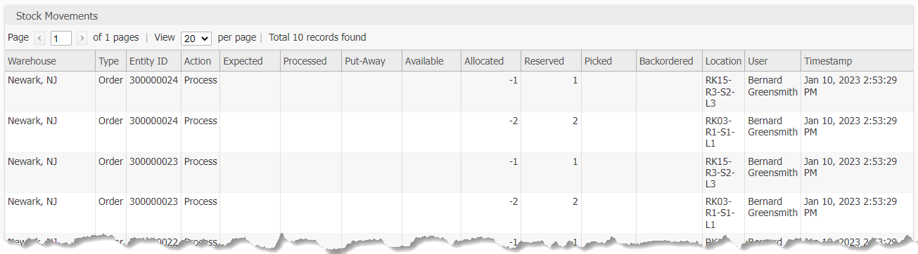 Displays a grid showing the Shipment Item movements as the BFO is processed.