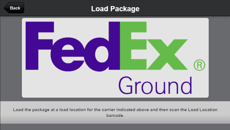 Scan the correct Load Location barcode which corresponds to the logo displayed. On success, an audible "ding" sound will play and you will be returned to the previous Loading page.