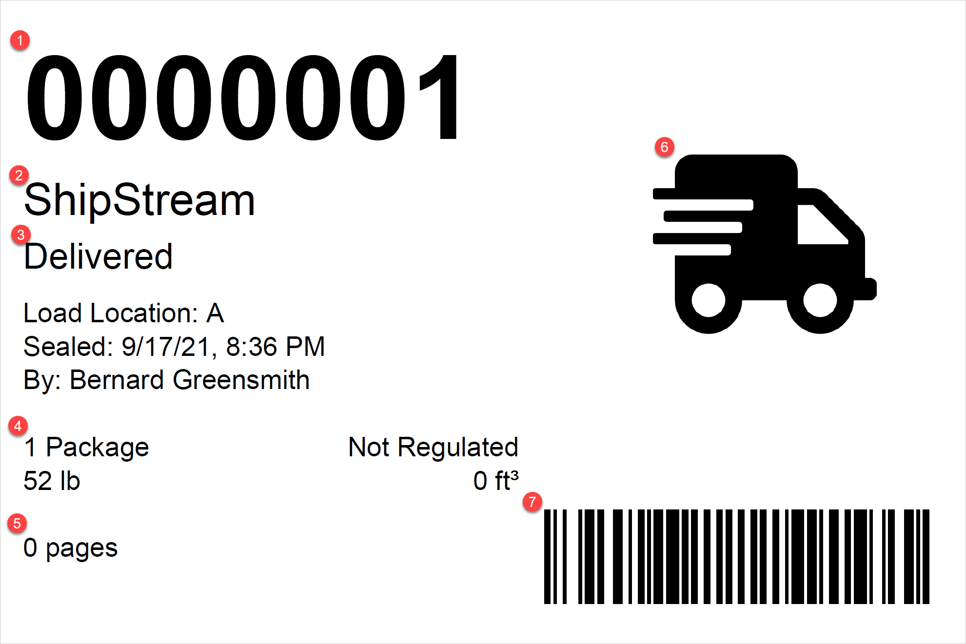 The first new barcode you need is a "Load Location". Load Location barcodes must be specific to the pickup carrier and have a suffix that can be anything you like. You will want to affix this label nearby to where you will be loading packages for a given carrier and will want to make the carrier referenced by the barcode obvious to the person performing the package loading.