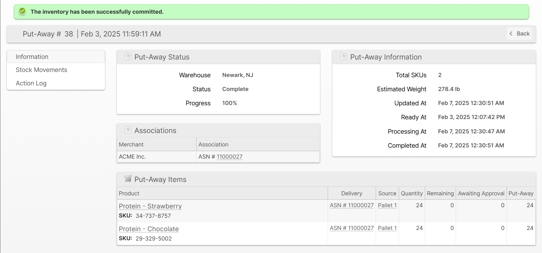 - Complete - All items have been put-away