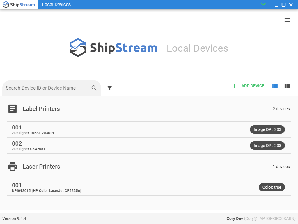 The Device App is the Windows GUI application that allows a single user on a machine to connect their printers or scales to the Device Hub.