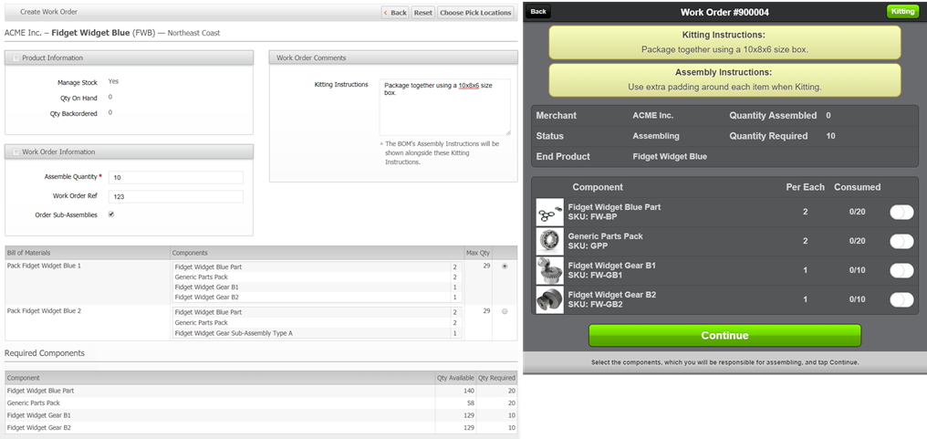 - A Merchant knows in advance that they are going to sell a promotional kit and want to have a bunch on hand already kitted and ready for Orders