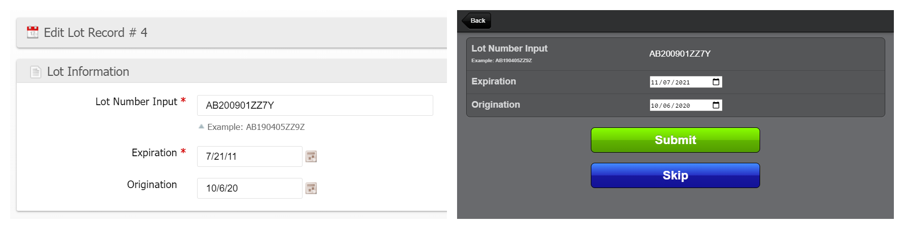 Edit Origination Date and Lots/Expirations