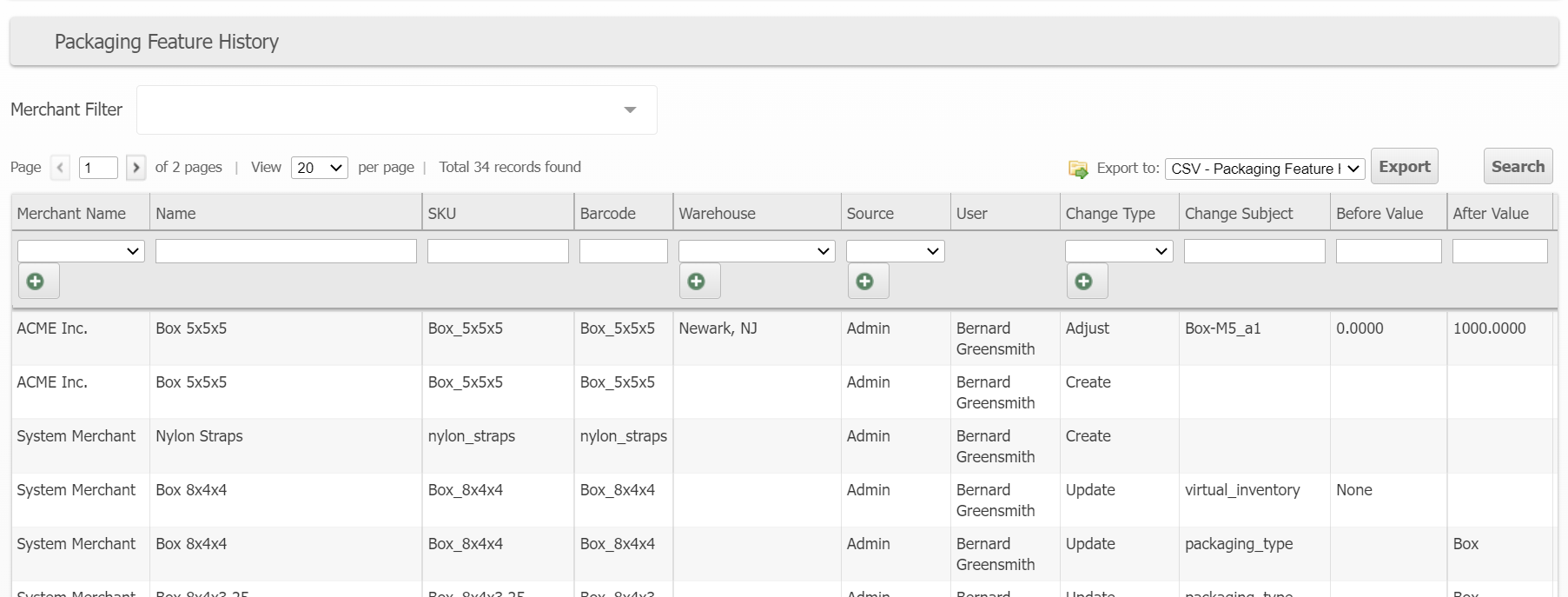 Just like you can for Products, you can now view all History for Packaging Features at Shipping > Packaging Features > History.