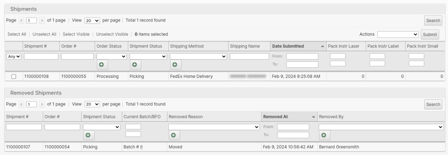 A shipment can be removed or even deleted from a Picking Batch or Bulk Fulfill Order for many different reasons. In this new version, these removals will be recorded for forensic and analytical purposes and this ties in closely with the feature above since the user-provided reason for removal is recorded here as well.