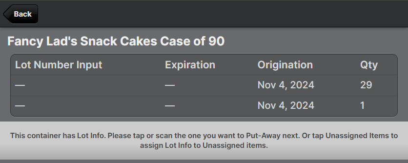 - Fixed a rare condition where two users receiving the same product at the same time from the same delivery or forcing two different lots on the same delivery to have identical information can prevent completion of delivery put-away. Also adds a Qty column to disambiguate such lots.