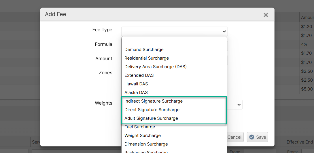 We've added three new fee types to cover the Signature Required optional services. These will also be automatically applied when required by the carrier, such as for some hazardous materials orders.