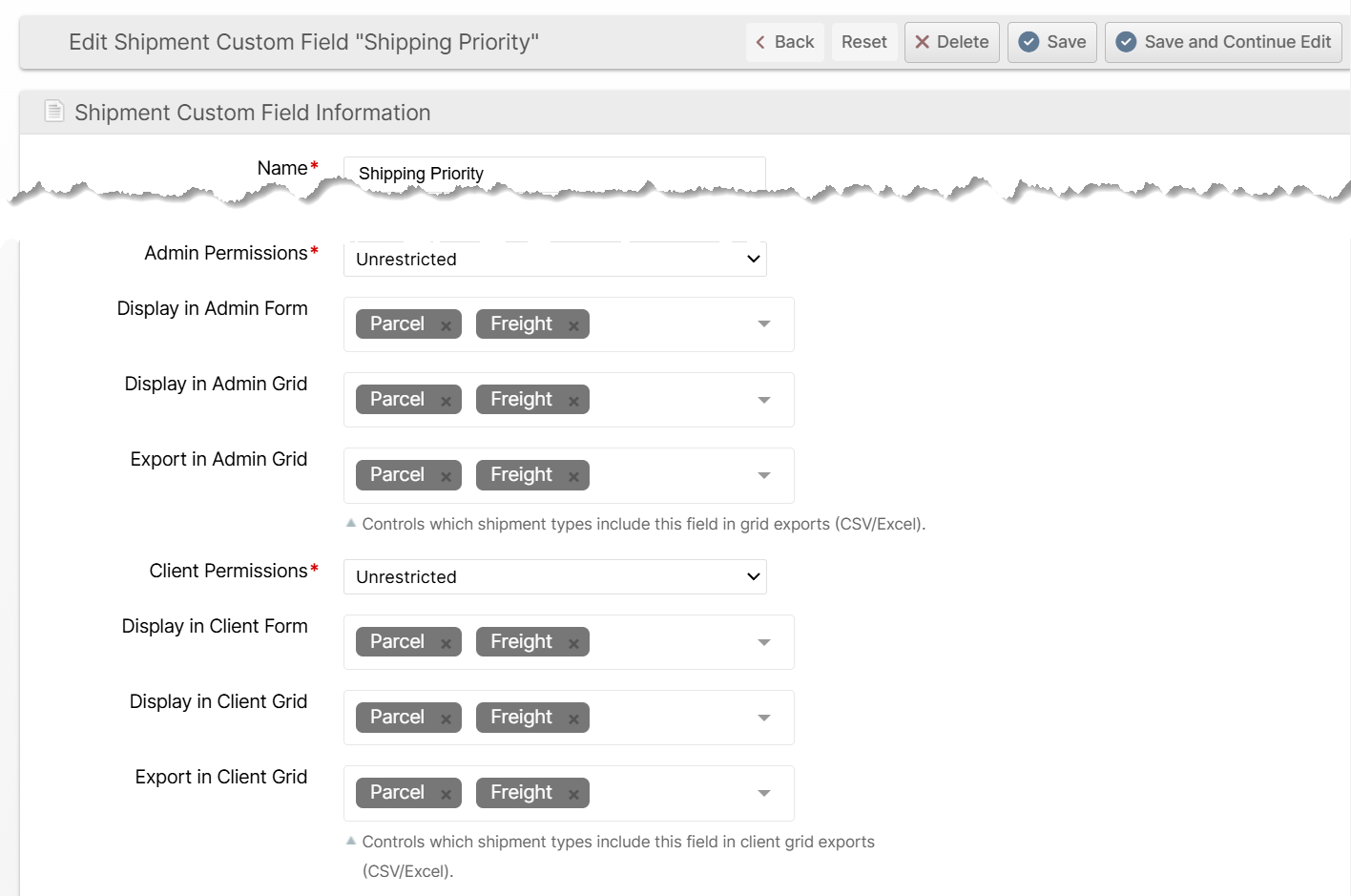 Additionally, the Shipment Custom Fields can be customized separately for each shipment type, allowing you to create more fields without cluttering up the data for irrelevant shipments.