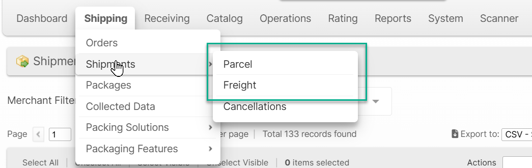 To better accomodate operational specialization for Parcel and Freight teams, you can now access separate pre-filtered grids for each type in both the Admin UI and the Client UI.