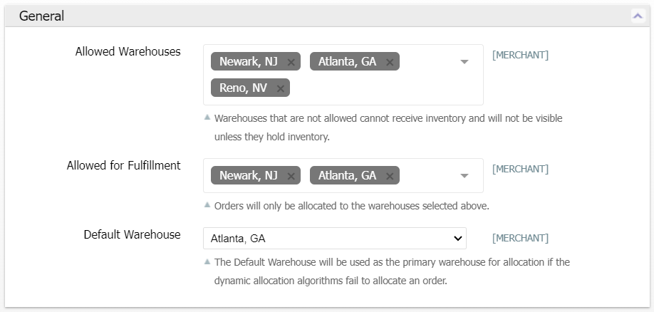 - The Allowed Warehouses configuration of each merchant