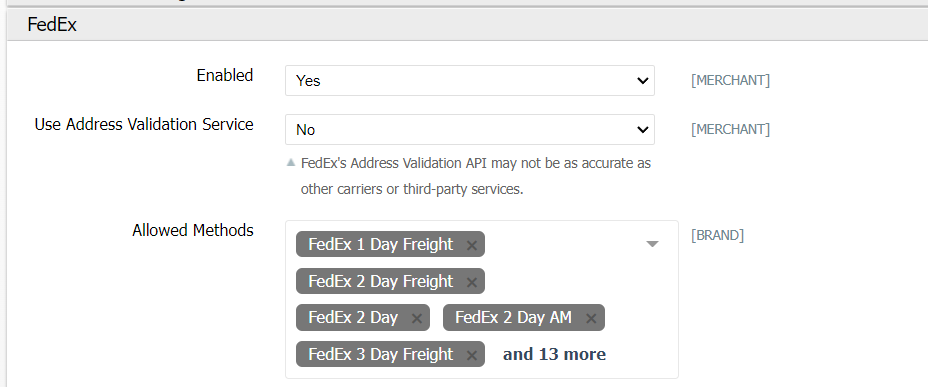 Shipping Account Groups can "inherit" accounts from one another using the "Inherit From" field. This is useful if you want to assign a merchant, brand or order to an alternate account but do not want to manage any duplicates of your other accounts. If no Shipping Account can be resolved for a shipment the system will then check for matching shipping accounts in the Shipping Account Group chosen in the Inherit From field. Thus, even if you have a very complex assignment of shipping accounts, by organizing your accounts appropriately you can avoid having to duplicate any shipping accounts making future account management that much more efficient.