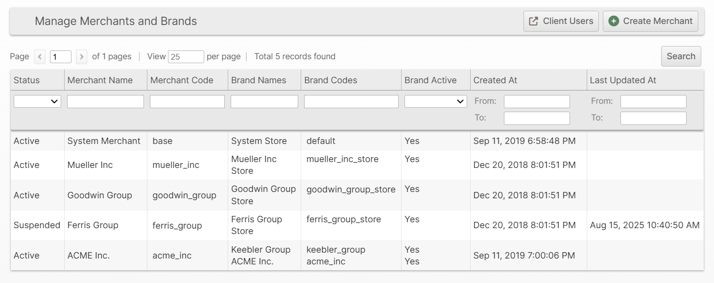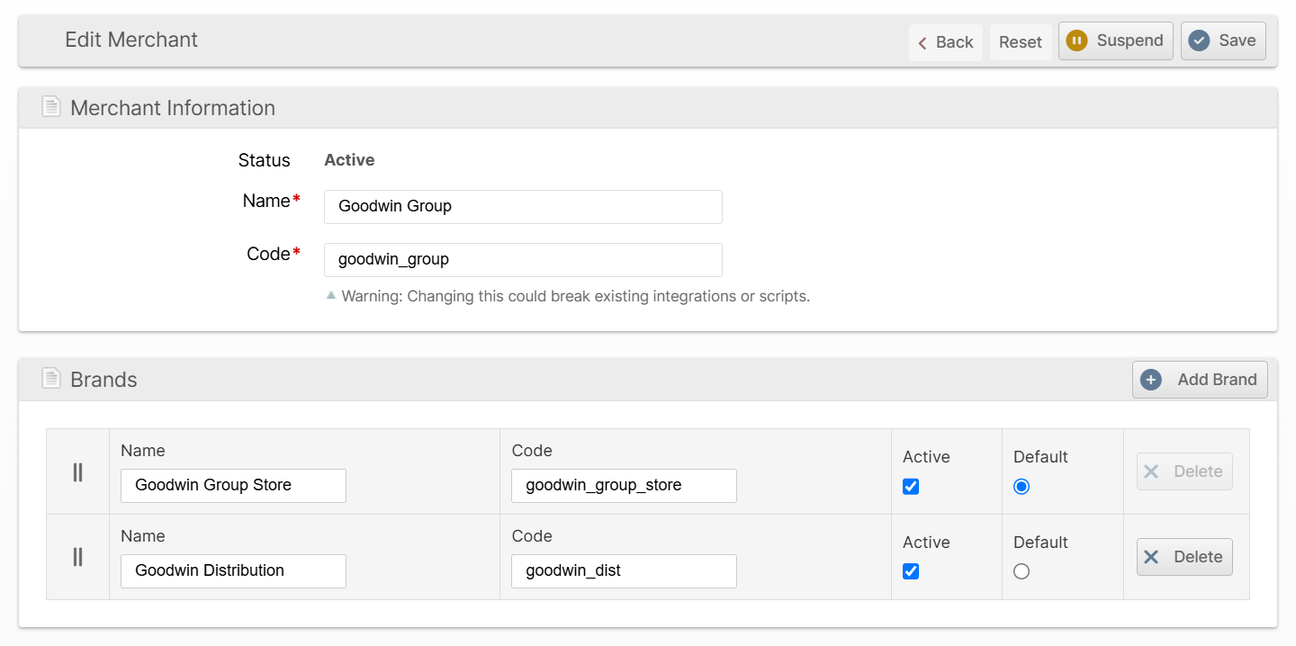 - Click Save to save the Merchant and all brands that were added.