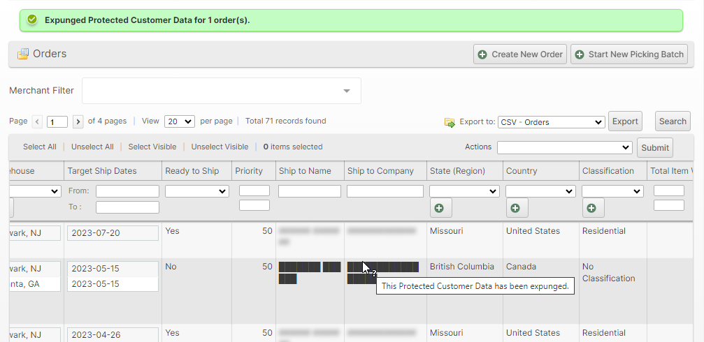 ShipStream takes data privacy seriously, in particular the names, company names, addresses, and contact information of your customers. This data is commonly referred to as Personally Identifiable Information (PII) or Protected Customer Data (PCD). Not only do we protect this data from unnecessary disclosure or breach, but we also provide you with the tools to effortlessly: